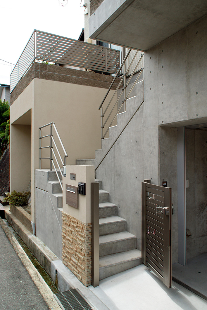 ガレージ横の門を入り階段を上るとそこが2世帯共有の玄関です。この玄関のある1階がお母様の生活の場。これから歳を重ねることを考えられ、LDKから寝室や水回りスペースに直接アクセスできるプランを要望され、それが形になりました。さらに、ダイニングの掃き出し窓はバルコニーガーデンにつながり、手軽に園芸も楽しめます。