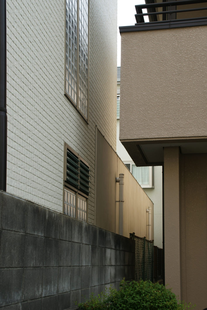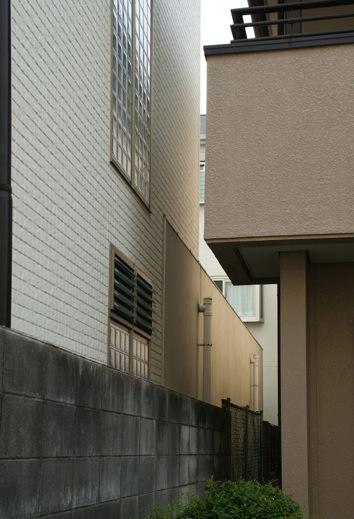 T様邸は独立した鉄骨造の建築物ですが、登記上は元々あった建物の増築という扱いになります。著名な建築家が設計したという平屋の建物の南側のスペースに新しい別棟をつなげる形で建てられました。ここでユニークなのは、居住スペースの確保のために既存棟の上に乗っかる恰好で増築棟の2・3階が持ち出していること。限られたスペースの中で建物同士の取り合いを上手く考えながら、必要十分な居住スペースを確保したというわけです。ちなみに、南側に増築したことにより既存棟への日照が心配になってしまいますが、こちらは元々中庭のある設計なので、採光は問題無しということでした。