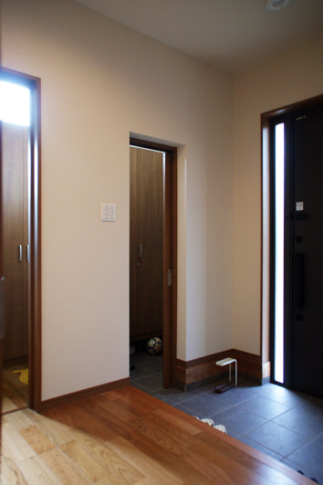 玄関サイドに大型の収納を備えたシューズクロークを設置。どちらからでも家に上がれる設計。