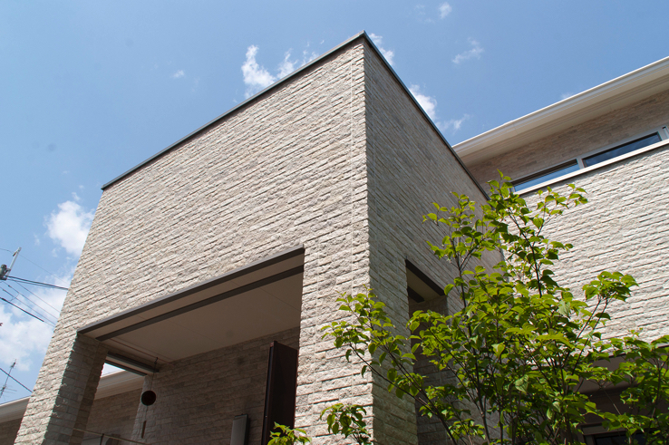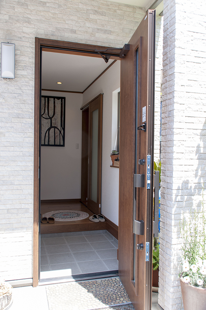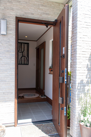 外観の印象は間口の広い立派な佇まい。その外観をさらに引き立てているのが凹凸感豊かな18mm厚のサイディングです。「薄いサイディングより高価だけど、家全体に占める差は僅か。それを考えるととても豪華に見えて非常にお値打ち。これから家を建てられる方にもおすすめしたい」とご主人。確かにコストアップ以上の豪華さが演出できていると感じました。