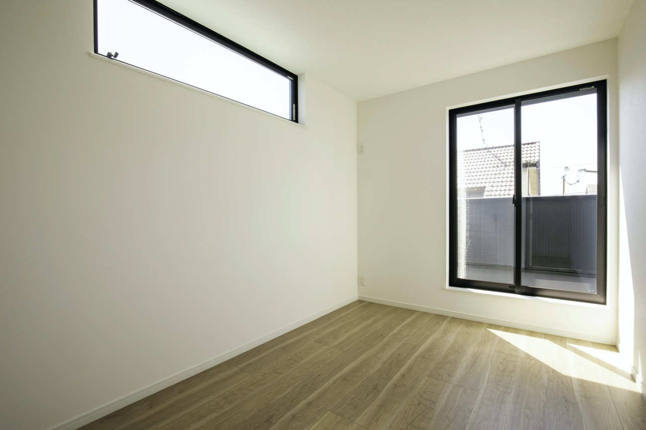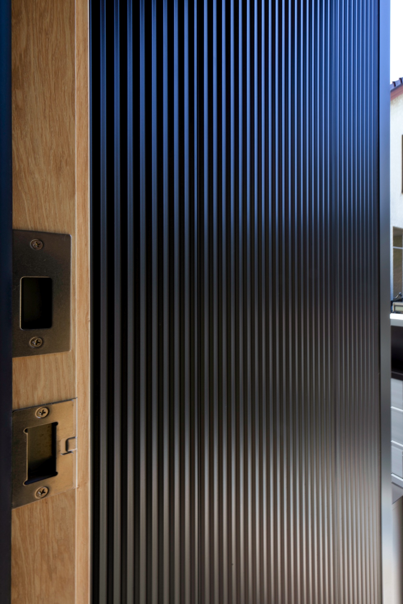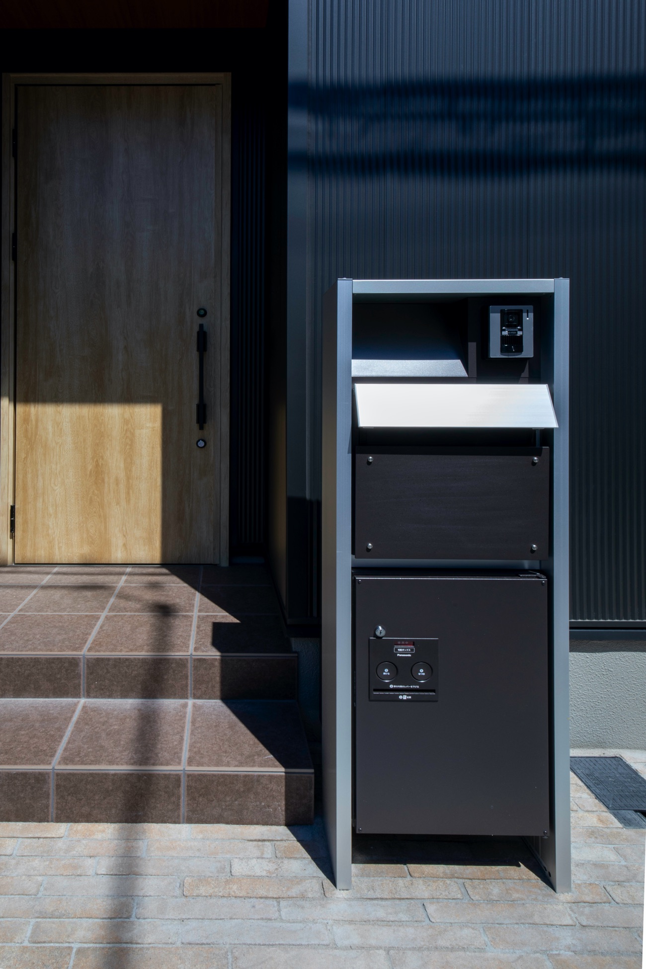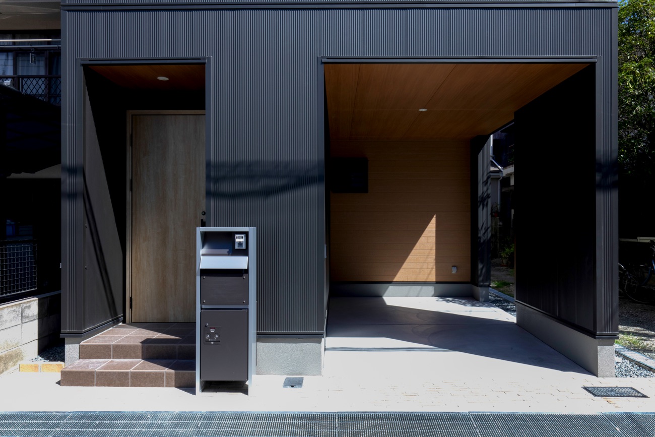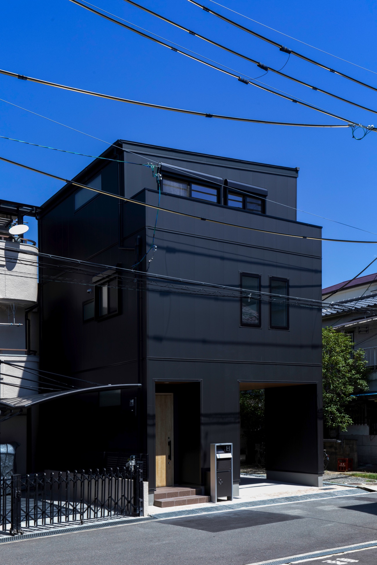 黒色のガルバリウム鋼板の外壁が、町並みに洗練されたモダンな印象を放ちます。