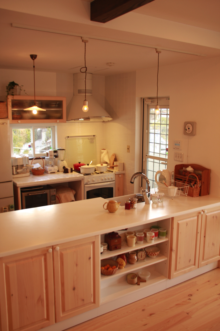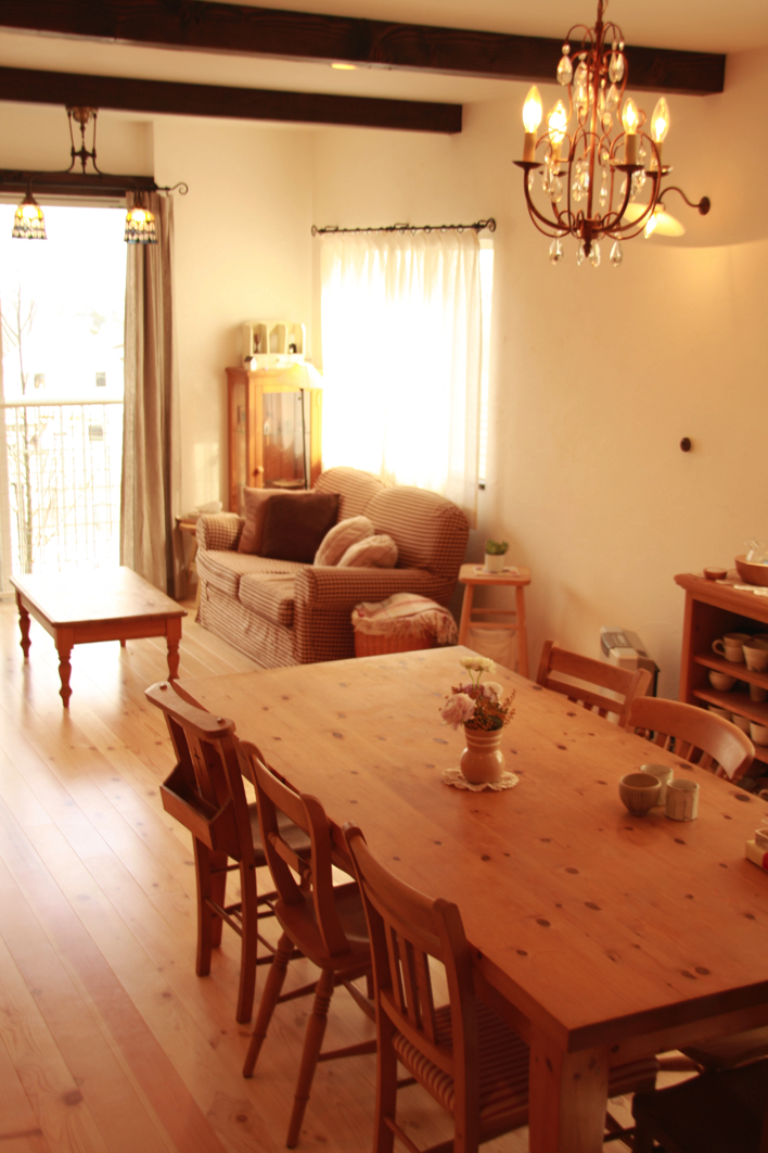 アンティーク雑貨がとてもよく似合う、自然素材を活かした内外装。