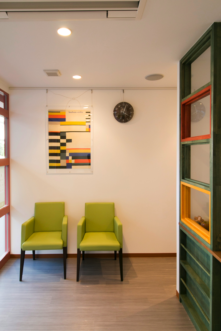 クリニックの待合スペースは、彩りがアートな雰囲気