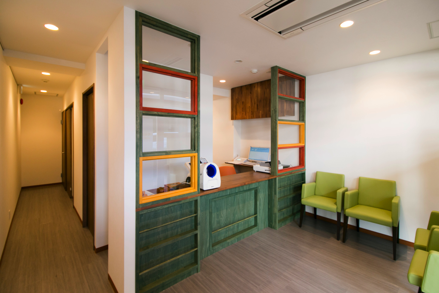 楽しい雰囲気で患者さんの気持ちを和ますカラフルなクリニック受付