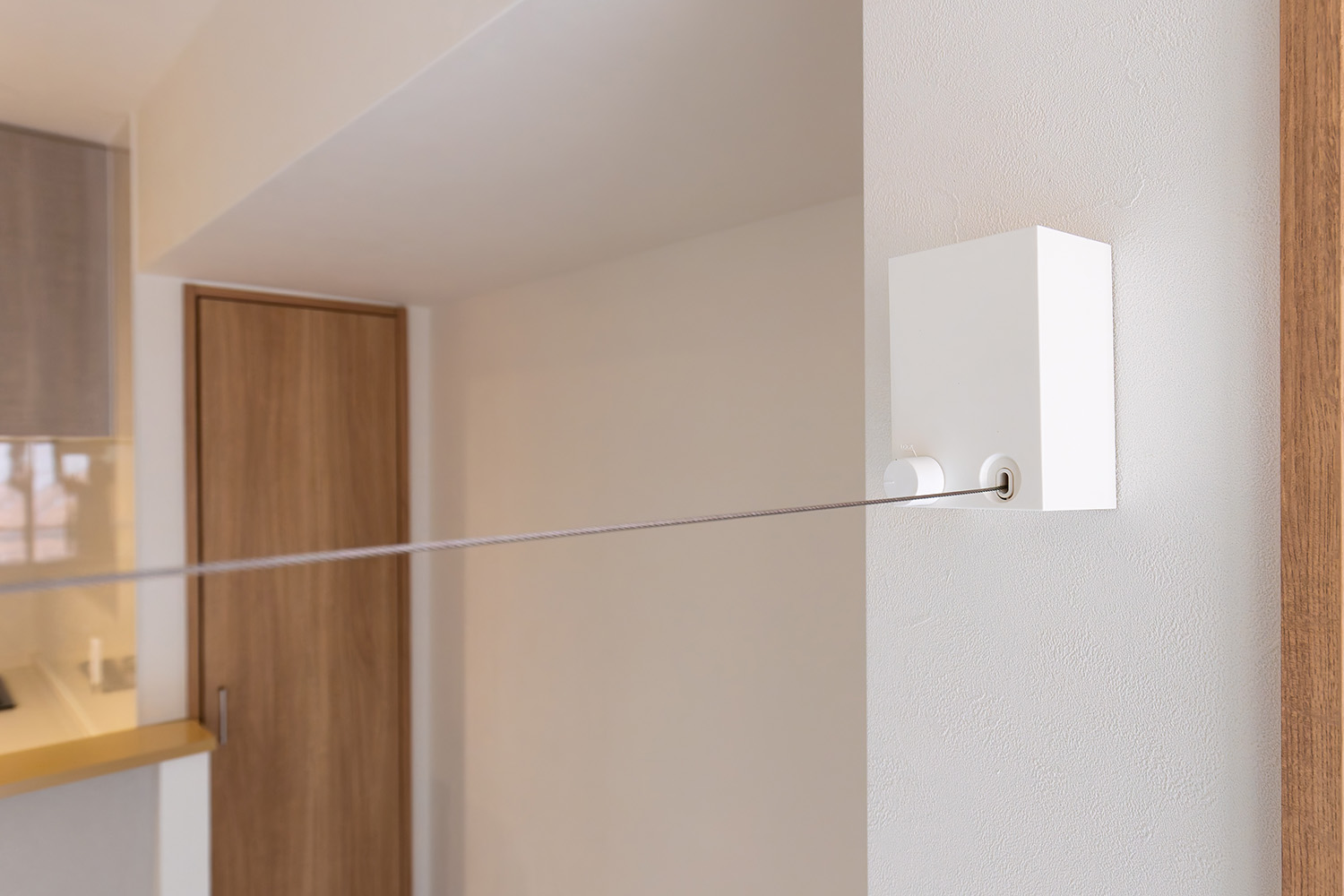 雨の日でも、洗濯物を乾かせる物干しロープを設けました。