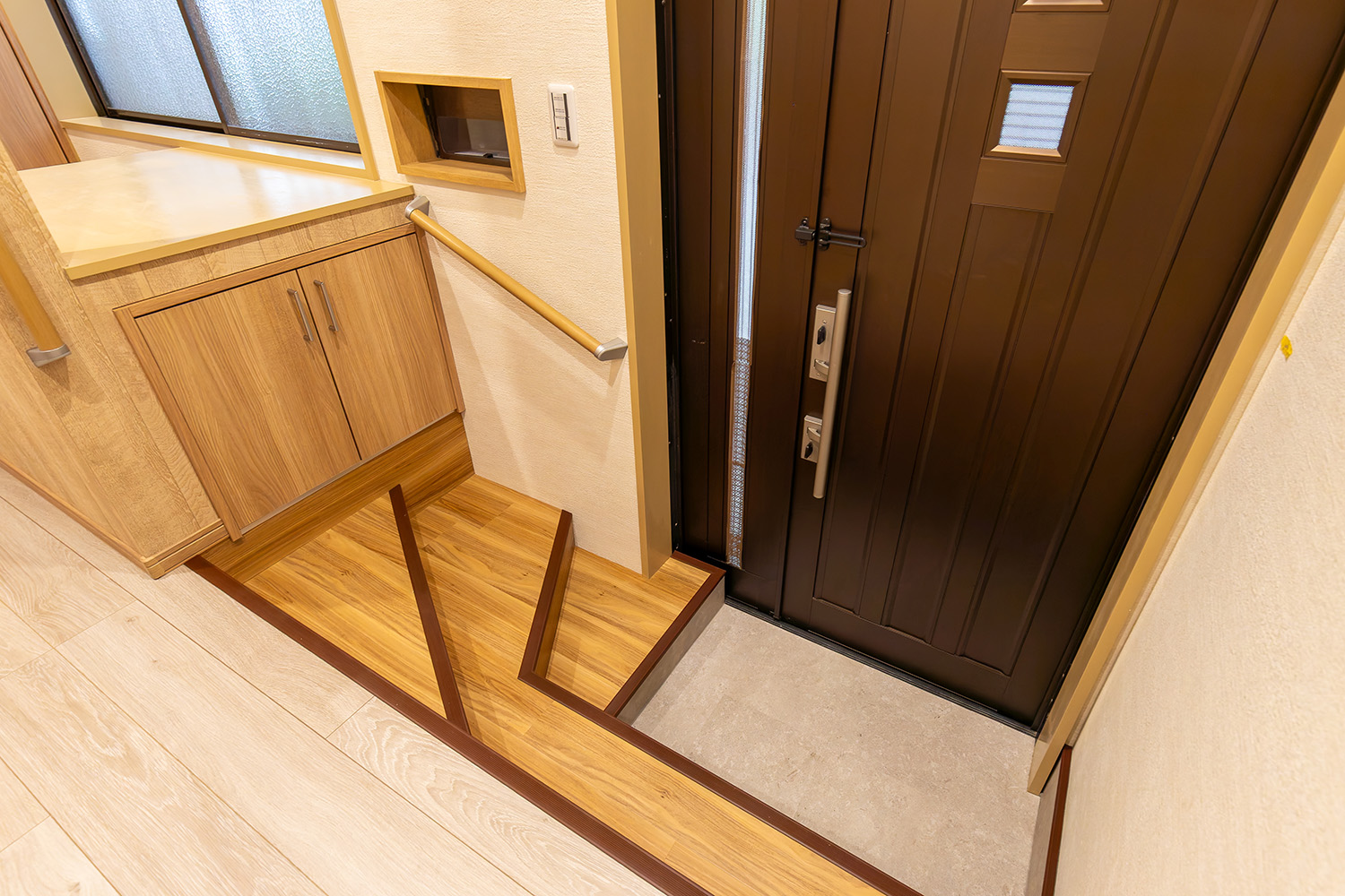 お母様の毎日の靴の脱ぎ履きを楽しんでもらえるよう工夫しました。