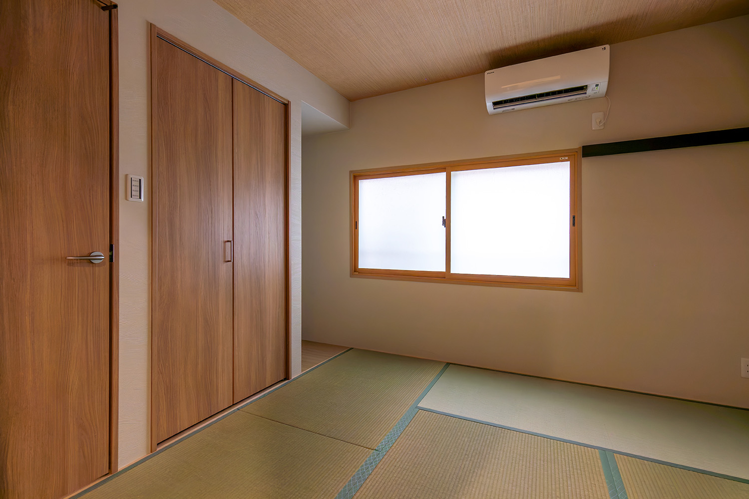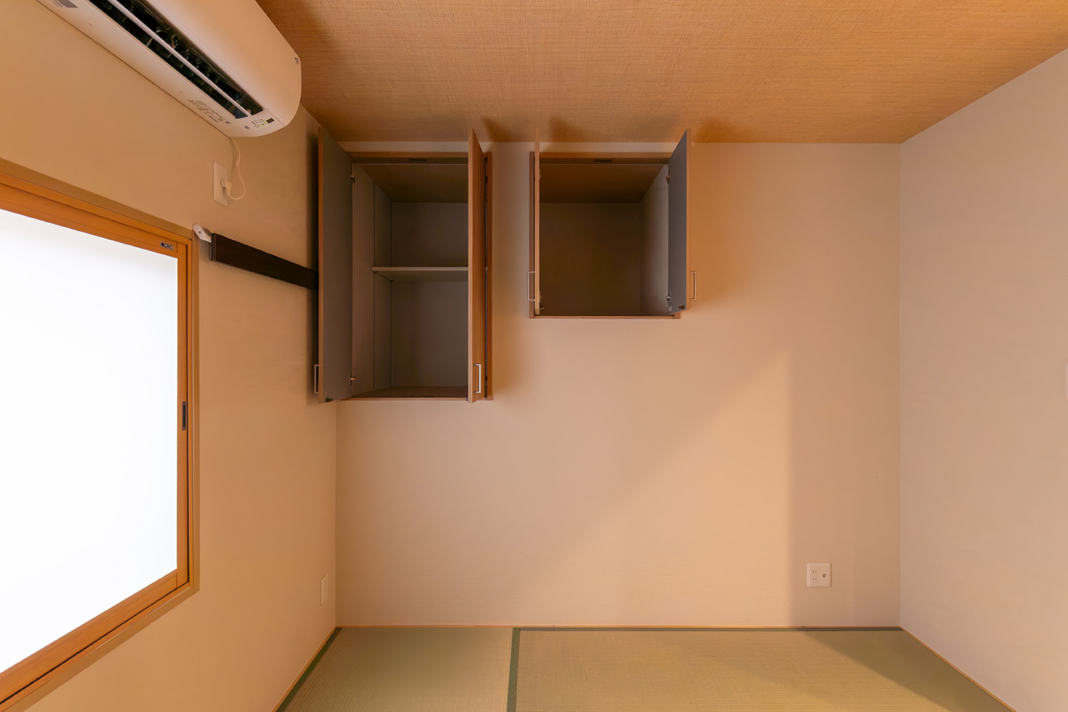 新設された畳の間の寝室です。収納スペースは、考えられる限り豊富に設けました。