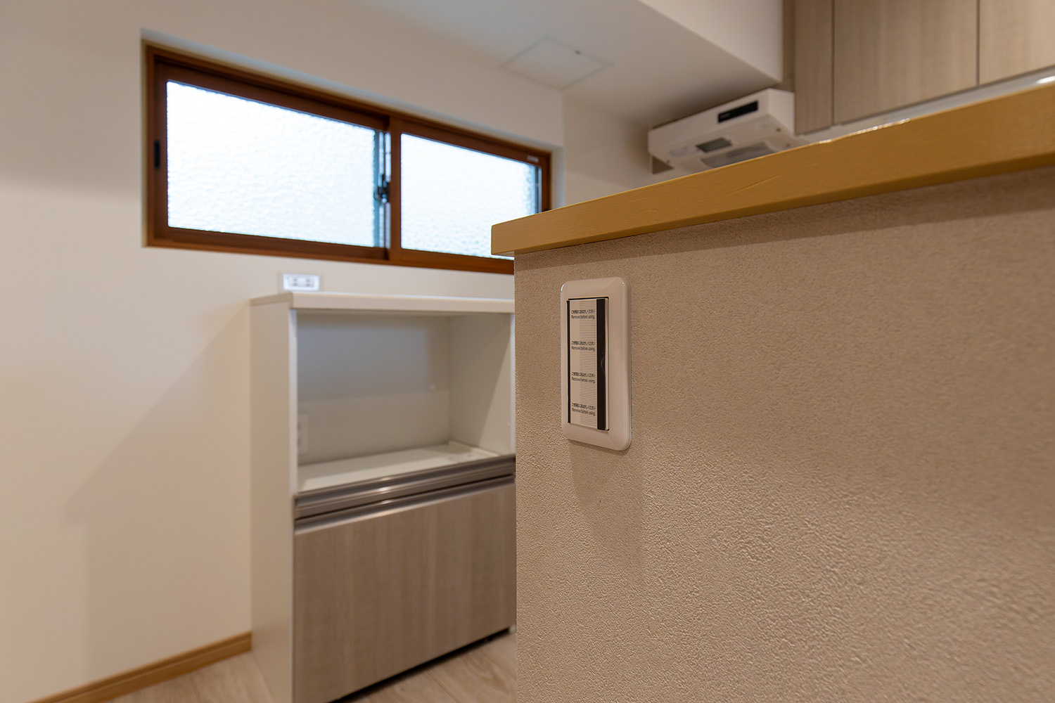 寝室からすぐ近くにあり、夜中にのどが渇いた時などに、キッチンだけ明るくできるようお母様の動線を考えて設けました。