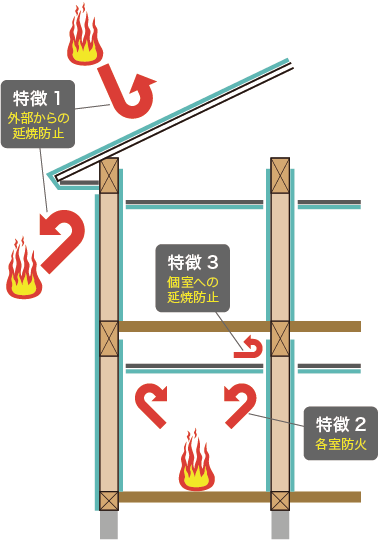 ❸万が一部屋から火が出ても延焼を遅らせる(他室への延焼遅延)